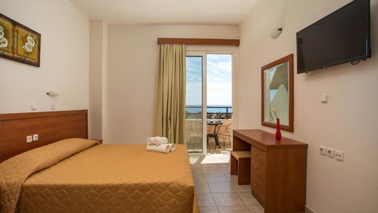Die klimatisierten Studios im Al Mare sind schlicht, aber gemütlich eingerichtet und bieten Ihnen alles, was Sie für einen angenehmen Aufenthalt benötigen. Zur Standardausstattung gehört eine Küchenzeile mit Küchenutensilien, einem Kühlschrank und Herdplatten. Jedes Studio verfügt über einen eigenen Balkon, auf dem Sie den Blick auf die Ägäis genießen können. Zur weiteren Ausstattung gehören ein TV und ein eigenes Bad mit Dusche.