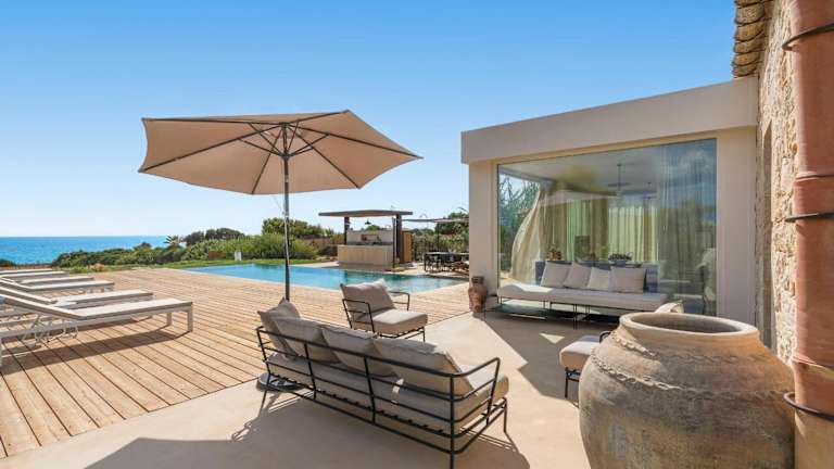 Die Villa umfasst 3 Schlafräume und 3 Badezimmer. Zur Ausstattung gehören Bettwäsche, Handtücher, ein TV sowie eine voll ausgestattete Küche. Darüber hinaus ist eine Terrasse mit Meerblick vorhanden.