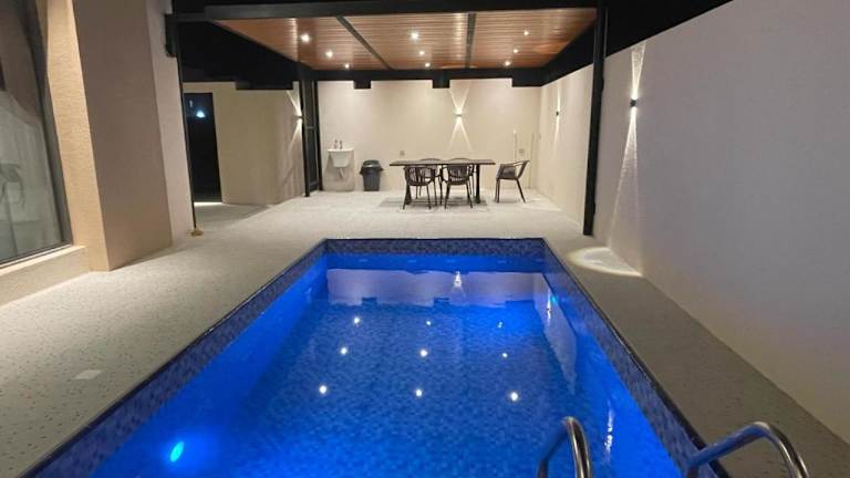 Es ist ein Außenpool vorhanden, der ganzjährig genutzt werden kann. Zusätzlich steht ein Whirlpool zur Verfügung, der Entspannung bietet. Die Unterkunft bietet zudem die Möglichkeit, die Sonnenterrasse und die Gemeinschaftslounge zu nutzen.