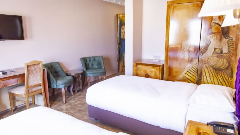 Das ÂLÂ HAN BOUTIQUE HOTEL in Sanlıurfa bietet eine ideale Unterkunft für Reisende, die die Nähe zum Balikli Gol und eine komfortable Unterkunft suchen. Mit einem schönen Garten, kostenfreien Privatparkplätzen und einem hauseigenen Restaurant bietet das Hotel alles für einen angenehmen Aufenthalt. Der freundliche Zimmerservice, die 24-Stunden-Rezeption und der Geldwechsel stehen Ihnen jederzeit zur Verfügung. Die Zimmer sind modern eingerichtet und verfügen über Annehmlichkeiten wie Klimaanlage und Flachbild-TV. Einige Zimmer bieten zudem einen Balkon. Das Hotel bietet Ihnen ein leckeres amerikanisches oder Halal-Frühstück, um den Tag gut zu beginnen. Die Lage des Hotels ermöglicht es Ihnen, die Sehenswürdigkeiten von Harran zu besuchen und den Busbahnhof Sanliurfa in kurzer Entfernung zu erreichen. Der Flughafen Sanliurfa ist ebenfalls leicht erreichbar, und die Unterkunft bietet einen praktischen Flughafentransfer gegen Gebühr.