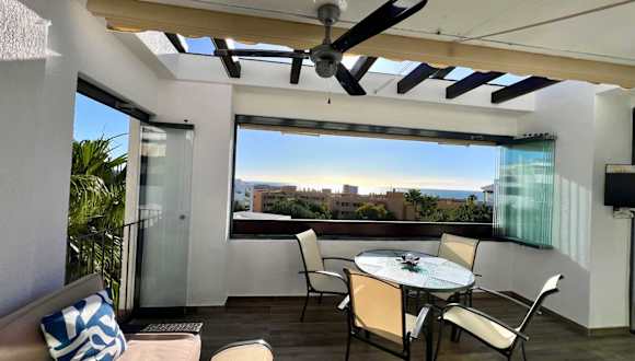 AlaMar Cala Mijas - Premium SemiPenthouse - Panoramic Views bietet eine komfortable Ferienwohnung mit Blick auf das Meer sowie die Berge. Die Unterkunft verfügt über einen Außenpool, einen Garten und eine Terrasse. Es wird kostenloses WLAN angeboten und die Rezeption ist rund um die Uhr besetzt.