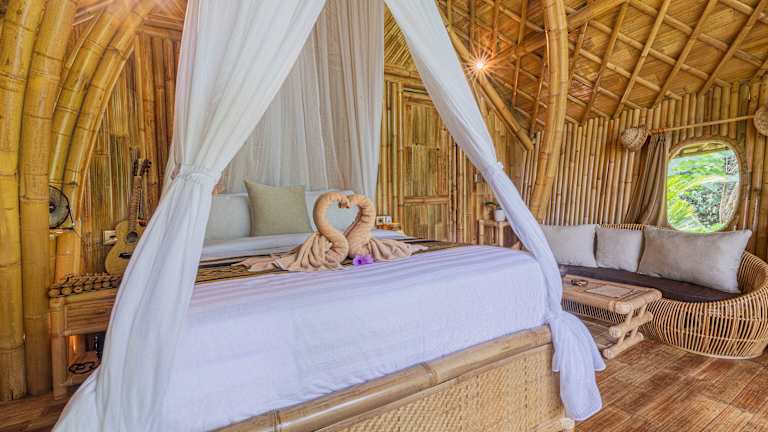 Die Unterkunft Alamvaya Bali Bamboo House befindet sich in einer ländlichen Gegend, nur 35 km von der Höhle Goa Gajah in Sidemen entfernt. Zu den beliebten Zielen in der Nähe zählen der Tegenungan-Wasserfall, der 38 km entfernt ist, sowie der Affenwald von Ubud, der 39 km entfernt liegt. Der nächstgelegene Flughafen, der Flughafen Ngurah Rai, befindet sich in 59 km Entfernung.