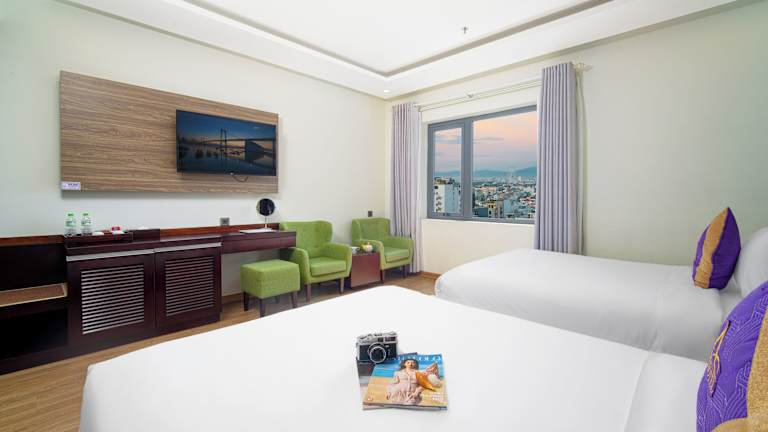 Das Alani Hotel & Spa in Đà Nẵng bietet Ihnen einen entspannten und komfortablen Aufenthalt nur wenige Gehminuten vom Strand My Khe entfernt. Genießen Sie die atemberaubende Aussicht auf das Meer von der Sonnenterrasse oder dem Swimmingpool auf der Dachterrasse. Die Zimmer sind elegant eingerichtet und bieten Annehmlichkeiten wie einen Flachbild-TV und kostenfreies WLAN. Das Hotel verfügt auch über ein Fitnesscenter, eine Sauna und ein Dampfbad. Das freundliche Personal steht Ihnen rund um die Uhr zur Verfügung, um Ihnen bei der Organisation von Touren oder anderen Anfragen behilflich zu sein.