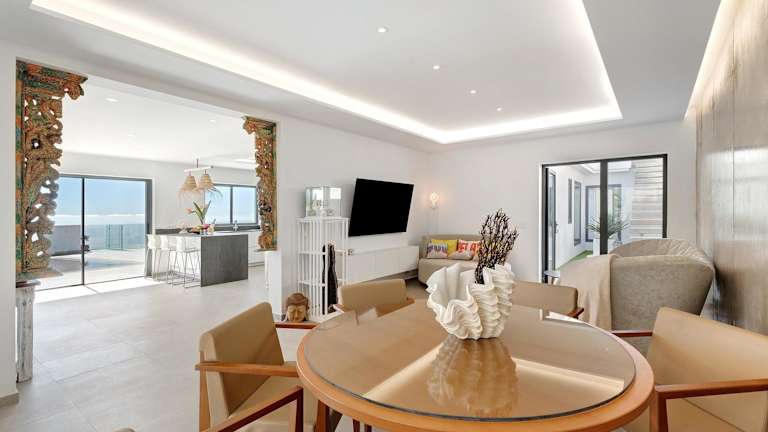 Die Villa verfügt über 3 Schlafzimmer, 2 Badezimmer sowie Bettwäsche und Handtücher. Zu den Annehmlichkeiten zählen ein TV mit Satellitenkanälen, eine voll ausgestattete Küche und eine Terrasse mit Blick auf die Stadt.