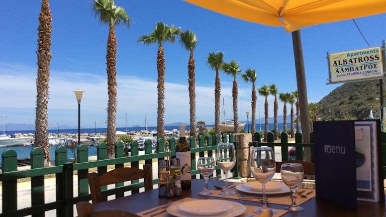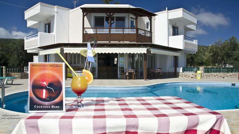 Das Hotel Albatross Studios ist eine familiengeführte Unterkunft in Kamari, nur wenige Schritte vom malerischen Hafen und dem Strand entfernt. Die Zimmer sind zur Selbstversorgung ausgestattet und bieten einen herrlichen Meerblick. Entspannen Sie am Pool oder auf der Terrasse und genießen Sie erfrischende Getränke und Snacks an der Poolbar. Das Hotel bietet auch regelmäßige Veranstaltungen wie Barbecues und Quiznächte an. Die zentrale Lage ermöglicht es Ihnen, Geschäfte, Bars und Restaurants in der Nähe zu erkunden.