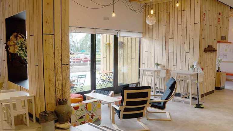 Das Albergue Milladoiro bietet eine Gemeinschaftsküche, in der die Gäste ihre eigenen Mahlzeiten zubereiten können. Es gibt auch eine Gemeinschaftslounge, in der Sie sich mit anderen Gästen treffen und entspannen können. In der Umgebung gibt es auch Restaurants und Cafés, in denen Sie lokale Spezialitäten genießen können.