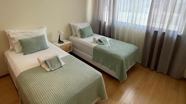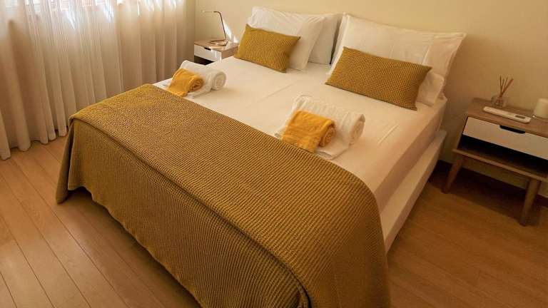 Die Ferienwohnung umfasst drei Schlafzimmer, ein Wohnzimmer, eine voll ausgestattete Küche mit Kühlschrank und Kaffeemaschine sowie zwei Badezimmer mit Bidet und Dusche. Handtücher und Bettwäsche werden bereitgestellt.