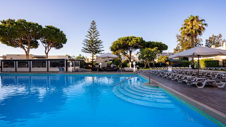 Das Hotel befindet sich in Areias de São João, umgeben von einem 1.500 qm großen Garten. Der feine Sandstrand ist nach etwa 900 m zu erreichen. In der Nähe liegt ein Shopping Center, das zahlreiche Einkaufsgelegenheiten bietet. Der Golfplatz Balaia ist in ca. 2 km erreichbar. Die Entfernung zum Stadtzentrum von Albufeira beträgt etwa 2,5 km und der Flughafen liegt ca. 38,9 km entfernt. Öffentliche Verkehrsmittel sind direkt vor dem Hotel verfügbar.