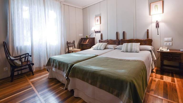 Das Hotel Alcázar in Irún ist ein einzigartiges Hotel im Stadtzentrum, umgeben von Bäumen und einem schönen Garten. Die nach außen gerichteten Zimmer bieten viele Annehmlichkeiten, darunter Terrassen und kostenloses WLAN. Genießen Sie das reichhaltige Frühstücksbuffet auf der Terrasse mit Blick auf die Bäume. Das Hotel verfügt über eine Bar und ist haustierfreundlich. Es ist der perfekte Ausgangspunkt, um das Baskenland zu erkunden, mit seiner Nähe zu den spanischen und französischen Gebieten. Die Lage bietet auch eine gute Anbindung an Geschäftszentren und Freizeitmöglichkeiten. Die öffentlichen Verkehrsmittel sind in der Nähe, ebenso wie der Bahnhof und der Busbahnhof. Die Strände von Hendaye und Hondarribia sind nur eine kurze Autofahrt entfernt, und es gibt viele Wander- und Radwege in der Umgebung. Für Wanderer auf dem Jakobsweg ist das Hotel Alcázar ein idealer Ort.
