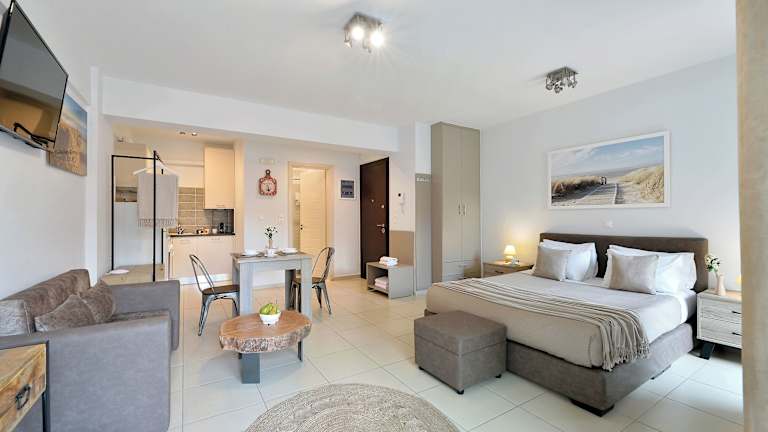 Die klimatisierten Apartments der Alekos Apartments 1 Νetflix bieten alles, was Sie für einen angenehmen Aufenthalt benötigen. Jedes Apartment verfügt über einen Balkon, einen Essbereich und einen gemütlichen Sitzbereich mit einem Flachbild-TV. Eine komplett ausgestattete Küchenzeile steht Ihnen ebenfalls zur Verfügung.