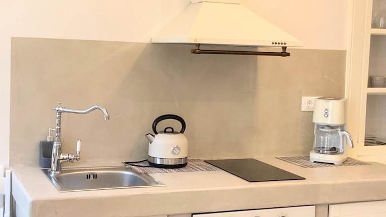 Die Ferienwohnung besteht aus einem Schlafzimmer, einem Wohnzimmer und einer voll ausgestatteten Küche, die einen Kühlschrank und eine Kaffeemaschine umfasst. Des Weiteren sind ein Badezimmer mit Dusche und kostenlosen Pflegeprodukten vorhanden. Handtücher und Bettwäsche werden zur Verfügung gestellt. Die Unterkunft ist klimatisiert.