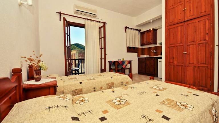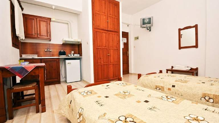 Die Studios sind mit einer Klimaanlage (gegen Gebühr), einem Balkon mit Stadtblick, einer Kochnische mit Kühlschrank und Herdplatte sowie einem Flachbild-TV ausgestattet. Jedes Zimmer hat ein eigenes Bad mit Dusche und Haartrockner. WLAN ist in den Zimmern ohne zusätzliche Kosten verfügbar, Nichtraucherzimmer sind ebenfalls vorhanden.