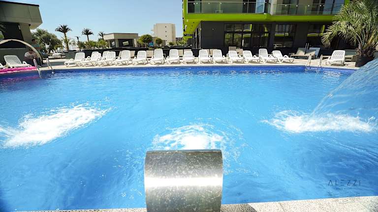 Das Alezzi Beach Resort ist eine moderne Unterkunft, die im Jahr 2019 eröffnet wurde. Die Einrichtung umfasst eine Rezeption, Aufzüge sowie verschiedene gastronomische Angebote. Zu den Annehmlichkeiten zählen ein Supermarkt, Geschäfte, ein Geldautomat und ein Getränkeautomat. Ein schöner Garten, ein Spielplatz und verschiedene Pools, darunter ein beheizter Außenpool und ein kinderfreundlicher Bereich, stehen den Gästen zur Verfügung. Zur Sicherheit der Gäste wird ein 24-Stunden-Sicherheitsdienst angeboten, sowie Optionen wie Babysitterservice und Autovermietung. WLAN ist in den öffentlichen Bereichen verfügbar.
