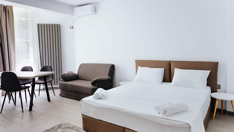 Die Zimmer im Alezzi Beach Resort sind modern gestaltet und bieten meist einen Balkon mit Meer- oder Gartenblick. Sie sind mit einem Queensize-Bett oder einem Sofabett ausgestattet, und Zustellbetten sind auf Anfrage verfügbar. Zu den Annehmlichkeiten gehören eine Heizung, ein Flachbild-Sat-TV, ein Telefon und kostenloses WLAN. Das Resort führt sowohl Familien- als auch Nichtraucherzimmer.