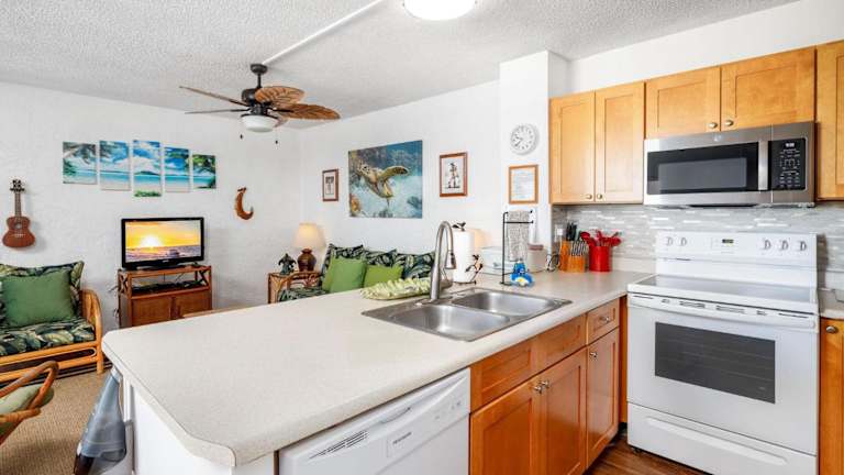 Die Alii Villas 340 bieten eine voll ausgestattete Küche, so dass Sie Ihre eigenen Mahlzeiten zubereiten können. Alternativ können Sie auch die vielen Restaurants in der Umgebung erkunden und lokale Köstlichkeiten genießen.
