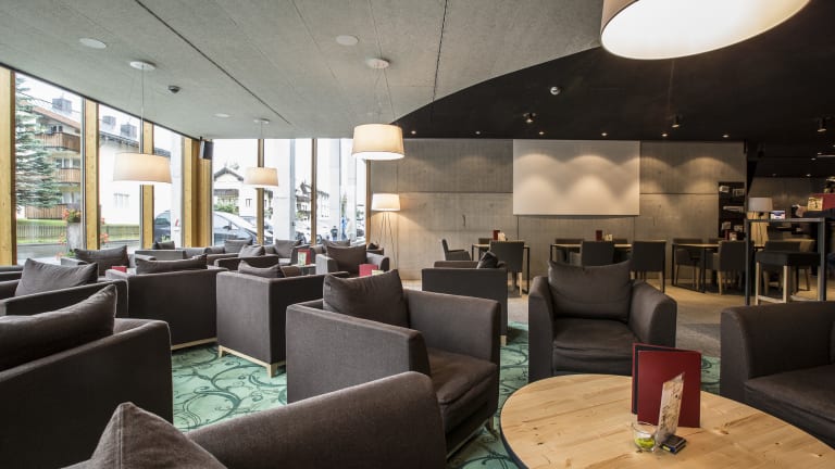 Bistro.Lounge.Bar Im stimmungsvollen Lounge-Ambiente der INN LODGE kann man beim Genuss eines leckeren Drinks, Cocktails oder Kaffees entspannen und die multikulturelle Gäste-Atmosphäre geniessen. Neben Drinks und Kaffee werden auch Snacks (u. a. Sandwiches, Pizza) angeboten*, sollte der kleine Hunger eintreten. Auf der Sonnenterrasse gibt's im Sommer zudem Glacé sowie Frappé zu geniessen. Bei sportlichen Events werden eine Grossleinwand zur Liveübertragung aufgestellt, und zu verschiedenen Anlässen treten auch Livebands auf, um den Gästen ihre Musik zu präsentieren. *Öffnungszeiten täglich von 7.00 - 00.00 Uhr, Snacks von 10.00 - 22.00 Uhr. Frühstücksbuffet Während der Morgenstunden geniesst Ihr beim reichhaltigen Frühstücksbuffet Kaffeekultur «alla Italiana». Das Frühstücksbuffet ist täglich von 7.00 - 10.00 Uhr geöffnet und beinhaltet, um genug Energie für den sportlichen Tag tanken zu können: Café crème, Milchcafé, Espresso, Cappuccino, div. Tee, Ovo- und Schokoladenmilch Fruchtsäfte, Quellwasser unterschiedliche Brote, Gipfeli verschiedene Cerealien Butter, Becel, Honig, Konfitüre, Nutella, Streichkäse, div. Joghurts, Birchermüesli, Früchte verschiedene Fleischaufschnitte diverse Käsesorten Preis Frühstücksbuffet (sofern nicht im Zimmerpreis inbegriffen): CHF 15.00 pro Person.