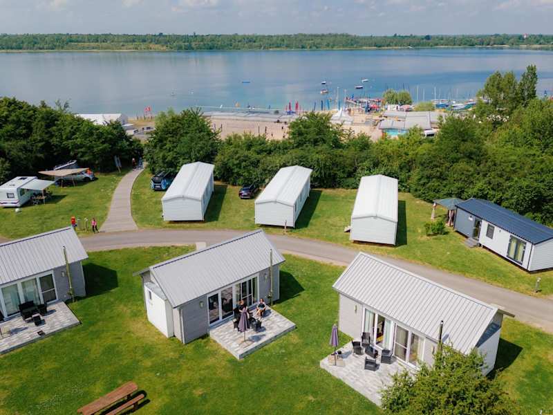 Das ALL-on-SEA Camp & Sport Resort Leipzig am Schladitzer See ist in einem umweltfreundlichen Holzgebäude untergebracht und bietet eine einladende Atmosphäre mit einem Restaurant, das frische Küche und einen Blick auf den See serviert.