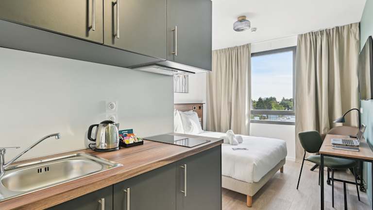 Die Zimmer im All Suites Paris Ouest Colombes sind komfortabel und modern eingerichtet. Jedes Zimmer verfügt über einen Flachbild-TV, ein eigenes Bad mit Badewanne oder Dusche und einen Haartrockner. Die Küchenzeile ist mit einem Kühlschrank, einem Backofen und einer Mikrowelle ausgestattet, so dass Sie sich selbst verpflegen können. Kostenloses WLAN steht Ihnen in allen Bereichen der Unterkunft zur Verfügung.