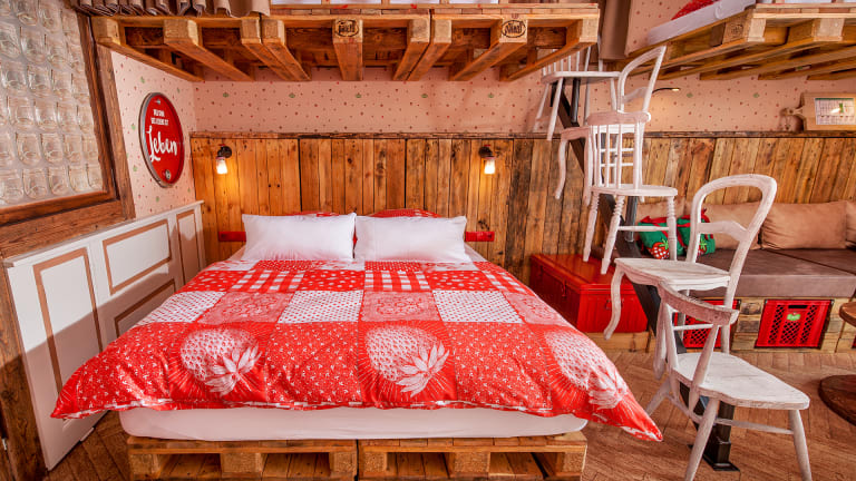 "ALLES PALETTI" Karls Upcycling Hotel Wenn euch dank Limonadenflaschen ein Licht aufgeht und euer Bett schon Erdbeerkisten getragen hat, wenn ihr beim Blick durchs Fenster an Marmelade denkt und es euch auf Kissen to go bequem macht, wenn ihr im Bad Schlitten fahrt und die Wände verpackt sind, dann seid ihr zu Gast in Karls Upcycling-Hotel. Herzlich willkommen im ALLES PALETTI! Am 23. März 2018 haben wir für euch unser Upcycling-Hotel ALLES PALETTI mit 50 Schatz-Kisten-Zimmern in Karls Erlebnis-Dorf Rövershagen eröffnet. Dafür haben wir Schätze aus vergangenen Zeiten gesucht und gefunden, sie aufpoliert und zum Strahlen gebracht. Schätze, die Geschichten aus ihrem früheren Leben erzählen: als Einkaufstasche, als Euro-Palette, als Marmeladenglas. All diese könnt ihr entdecken in unseren liebevoll und einzigartig eingerichteten Schatz-Kisten. Gleichzeitig erwartet euch hier aller Komfort, den uns die heutige Zeit bietet. Und das Beste: Ihr könnt euch schon jetzt einen Platz in der ersten Upcycling-Reihe sichern. Also: Ran an die Paletten!