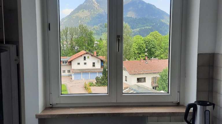 Die Ferienwohnung Allgäu Auszeit ist mit kostenlosem WLAN und einem Balkon ausgestattet, von dem aus Gäste einen Blick auf die Berge und die Stadt genießen können. Die Ferienwohnung ist schlicht und funktional eingerichtet und bietet den Gästen eine komfortable Auszeit.