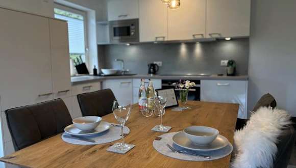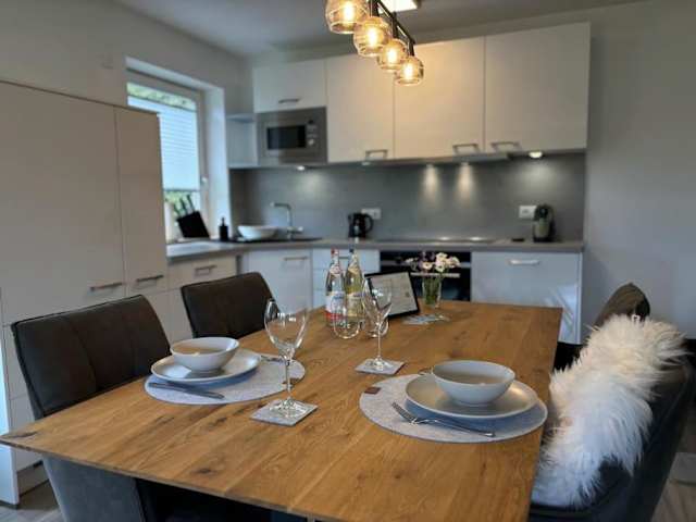 Die Ferienwohnung besteht aus 1 Schlafzimmer, einem Wohnzimmer sowie einer gut ausgestatteten Küche, die mit einem Kühlschrank und einem Geschirrspüler ausgestattet ist. Zudem sind ein Flachbild-TV und ein Badezimmer mit Dusche vorhanden. Handtücher und Bettwäsche werden bereitgestellt. Eine Terrasse mit Gartenblick ergänzt die Ausstattung.