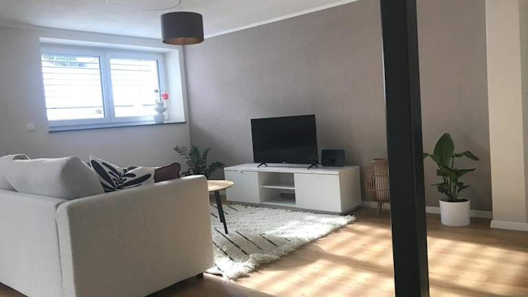 Die Ferienwohnung umfasst 1 Schlafzimmer, ein Wohnzimmer sowie eine voll ausgestattete Küche, die mit einem Geschirrspüler und einer Kaffeemaschine ausgestattet ist. Weiterhin gibt es ein Badezimmer mit Dusche und Haartrockner. Die Unterkunft eignet sich auch für Familien und verfügt über ein Babybett für Kinder im Alter von 0 bis 2 Jahren.