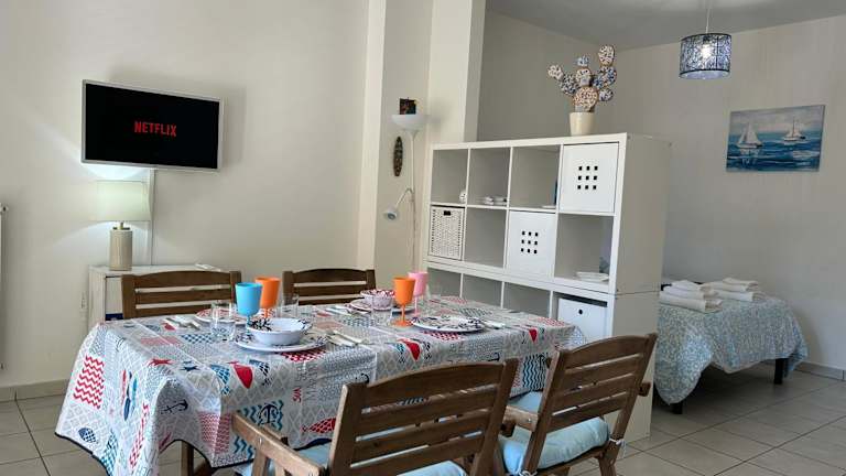 Die Ferienwohnung verfügt über ein Schlafzimmer, ein Wohnzimmer und eine voll ausgestattete Küche, die mit einem Kühlschrank und einer Kaffeemaschine ausgestattet ist. Das Badezimmer ist mit einem Bidet und einer Dusche ausgestattet. Handtücher und Bettwäsche werden zur Verfügung gestellt, sind jedoch nicht im Zimmerpreis enthalten und können gegen eine Gebühr ausgeliehen werden.