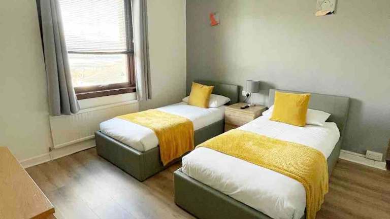 Das Apartment bietet Ihnen 2 komfortable Schlafzimmer, ein geräumiges Wohnzimmer und eine voll ausgestattete Küche. Die Küche verfügt über einen Kühlschrank und einen Wasserkocher, so dass Sie sich selbst verpflegen können. Das Badezimmer ist mit einer Dusche und kostenlosen Pflegeprodukten ausgestattet. Handtücher und Bettwäsche werden im Apartment gestellt, so dass Sie sich um nichts kümmern müssen.
