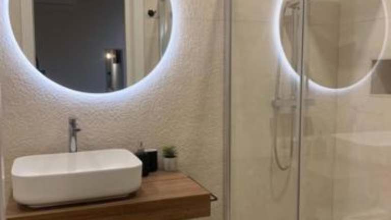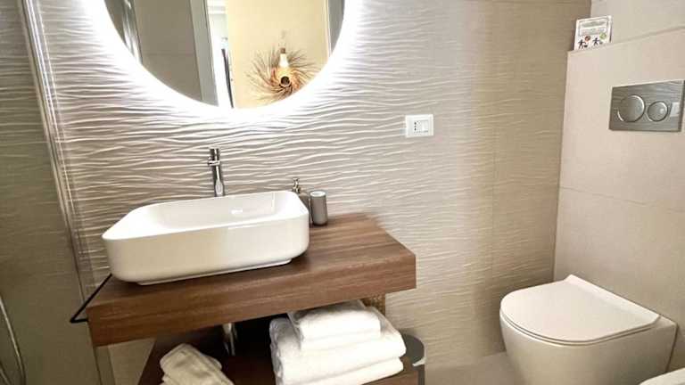 Jede Wohneinheit in der Unterkunft Almarì verfügt über ein eigenes Badezimmer mit Bidet, Klimaanlage, Flachbild-TV und Kühlschrank. Die Badezimmer sind voll ausgestattet und bieten eine Dusche sowie einen Haartrockner.
