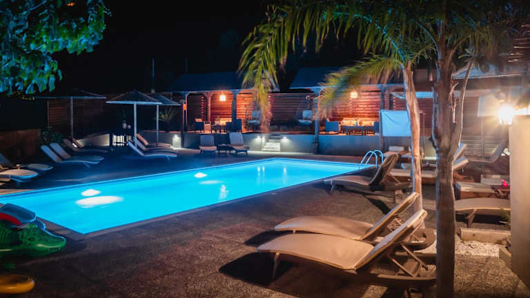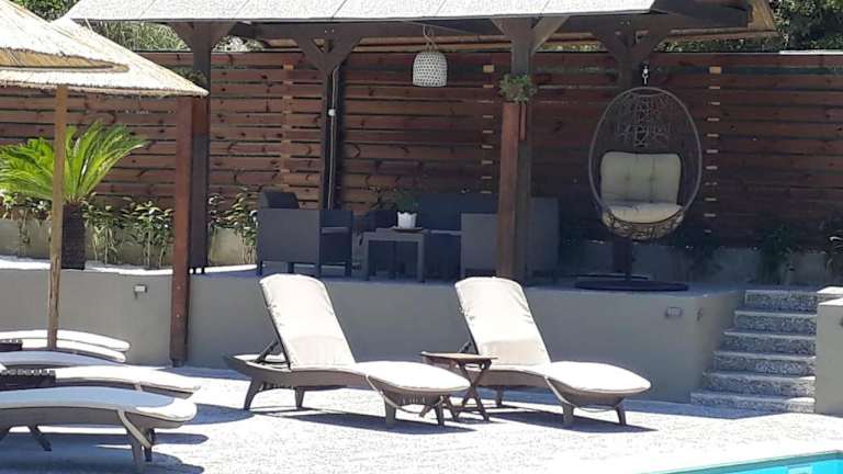 Die Unterkunft ermöglicht verschiedene Aktivitäten wie Schwimmen im Außenpool, Entspannung im Garten, Wandern und Angeln in der Umgebung. Die Apartments sind umgeben von einem Garten und bieten eine Sonnenterrasse mit Sonnenstühlen.