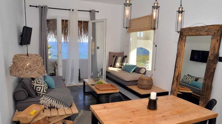 Die klimatisierten Unterkünfte der Aloe Mare Suites bieten alles, was Sie für einen angenehmen Aufenthalt benötigen. Jede Unterkunft verfügt über einen Balkon, von dem aus Sie die schöne Umgebung genießen können. Im Inneren finden Sie einen gemütlichen Sitzbereich, einen Flachbild-Sat-TV und eine voll ausgestattete Küche mit Kühlschrank und Kochfeld. Das private Badezimmer ist mit einer Dusche und kostenlosen Pflegeprodukten ausgestattet. Ein Highlight sind die Terrassen, die einen herrlichen Blick auf die Berge bieten.