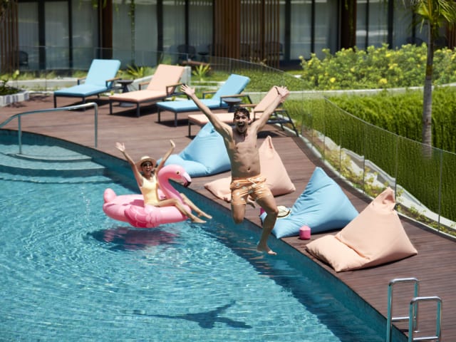 Das Aloft Bali Kuta ist ein lebendiges Lifestyle-Hotel für Reisende, die Energie, Kreativität und Begegnung suchen. Nur wenige Schritte vom Kuta-Strand entfernt und direkt im Beachwalk Shopping Center gelegen, bietet es einfachen Zugang zu Balis pulsierendem Nachtleben, vielfältiger Gastronomie und stilvollen Boutiquen. Mit mutigem Design und lebendigen Gemeinschaftsbereichen ist das Aloft Bali Kuta die perfekte Basis, um Inselentspannung mit urbaner Lebendigkeit zu verbinden. Ob zum Erkunden, Arbeiten oder Entspannen – hier erwartet Sie ein Aufenthalt voller Stil, Komfort und einer Prise Spaß.