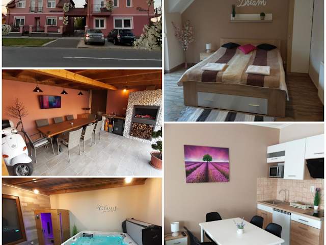 Das Álom Apartman in Hajdúszoboszló ist die perfekte Unterkunft für einen entspannten Aufenthalt in der Nähe des Thermalbads Hungarospa. Mit einer schönen Gartenterrasse, einem Grillplatz und einem Kinderspielplatz bietet das Hotel eine angenehme Umgebung für Familien und Paare. Die klimatisierten Unterkünfte sind gut ausgestattet und verfügen über alle Annehmlichkeiten, die man für einen komfortablen Aufenthalt benötigt. Supermärkte und Restaurants sind in der Nähe und das Stadtzentrum sowie der Bahnhof sind gut erreichbar.