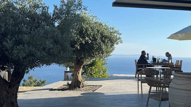 Die Unterkunft bietet ein Buffet, das als kontinentales oder amerikanisches Frühstück gereicht wird. In der Hotelanlage befindet sich ein Restaurant, das griechische und mediterrane Küche anbietet. Auf Anfrage sind auch vegetarische, vegane und glutenfreie Optionen verfügbar.