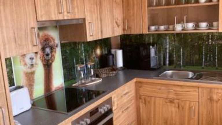 Das Apartment im Alpakaglück verfügt über zwei Schlafzimmer, ein Wohnzimmer und eine voll ausgestattete Küche. Die Küche bietet alle Annehmlichkeiten, die Sie für die Zubereitung Ihrer Mahlzeiten benötigen, einschließlich eines Kühlschranks und einer Kaffeemaschine. Das Badezimmer ist mit einer Dusche und einem Haartrockner ausgestattet. Handtücher und Bettwäsche werden gestellt, um Ihnen einen angenehmen Aufenthalt zu ermöglichen.