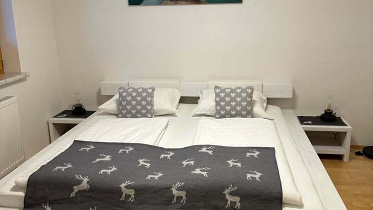 Die Ferienwohnung umfasst 1 Schlafzimmer, ein Badezimmer mit Dusche sowie eine gut ausgestattete Küche mit Kühlschrank und Mikrowelle. Zudem steht ein Flachbild-TV mit Satellitenkanälen zur Verfügung. Handtücher und Bettwäsche werden in der Ferienwohnung bereitgestellt.