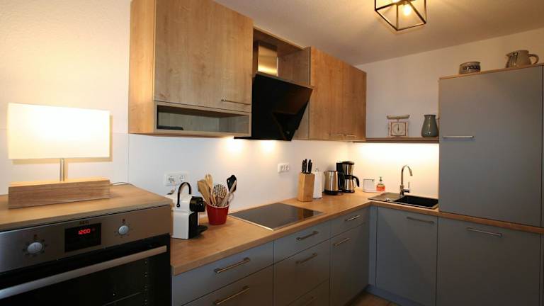 Die Ferienwohnung verfügt über ein Schlafzimmer, einen Flachbild-TV und eine Küchenzeile zur Selbstversorgung.