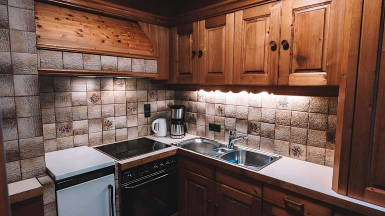 Das Ferienhaus umfasst zwei Schlafzimmer, eine gut ausgestattete Küche mit Kühlschrank und Ofen, einen Flachbild-TV sowie einen Sitzbereich. Des Weiteren ist ein Badezimmer mit Dusche vorhanden. Handtücher und Bettwäsche werden bereitgestellt.