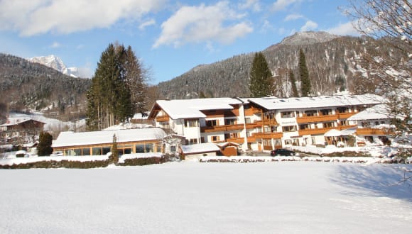 Verbringen Sie einen erholsamen Aufenthalt im Alpenhotel Weiherbach in Berchtesgaden. Genießen Sie die malerische Aussicht auf die bayerischen Alpen und das Kehlsteinhaus und entspannen Sie im Wellnessbereich mit Innenpool. Die Zimmer sind gemütlich und einige verfügen über einen Balkon. Starten Sie jeden Morgen mit einem reichhaltigen Frühstücksbuffet in den Tag. Die Ferienwohnungen bieten Ihnen zudem eine voll ausgestattete Küchenzeile. Nutzen Sie kostenfrei die Sauna, die Infrarotkabine und das Dampfbad. Für zusätzliche Entspannung steht Ihnen der Whirlpool gegen eine Gebühr zur Verfügung. Die zentrale Lage des Hotels ermöglicht es Ihnen, das Stadtzentrum von Berchtesgaden in nur 10 Gehminuten zu erreichen. Von dort aus gelangen Sie in kurzer Zeit zum Königssee und den Salzbergwerken der Stadt.