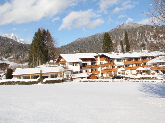 Das Alpenhotel Weiherbach befindet sich in einer wunderschönen Lage in Berchtesgaden mit Blick auf die beeindruckenden bayerischen Alpen und das Kehlsteinhaus. Die Umgebung lädt zu Spaziergängen und Wanderungen ein, während das Stadtzentrum von Berchtesgaden nur einen kurzen Fußweg entfernt ist. Von dort aus können Sie bequem mit dem Bus zum Königssee gelangen. Die berühmten Salzbergwerke der Stadt sind ebenfalls nur eine kurze Autofahrt vom Hotel entfernt.