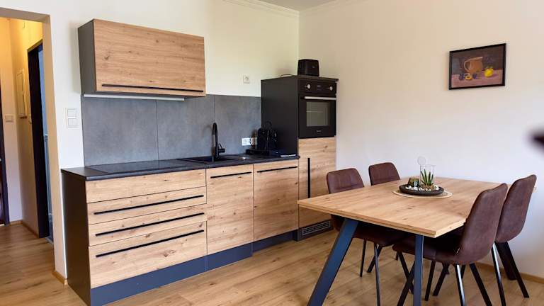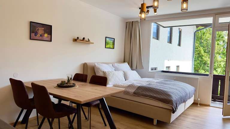 Die Ferienwohnung verfügt über 1 Schlafzimmer, ein Wohnzimmer sowie eine gut ausgestattete Küchenzeile, die mit einem Kühlschrank und einem Geschirrspüler ausgestattet ist. Ein Flachbild-TV ist ebenfalls vorhanden. Das Badezimmer ist mit einer Dusche ausgestattet. Handtücher und Bettwäsche werden bereitgestellt.