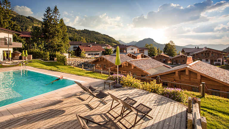 Die Seele baumelt, der Körper entspannt, die Sinne schärfen sich und Sie tanken auf. So einfach und wohltuend wie im Chaletdorf lässt es sich fast nirgendwo entspannen. In Ihrem Chalet machen Sie Saunagänge, wann und wie oft es Ihnen beliebt. Sie müssen nicht raus. Sie sind privat, für sich und vollkommen entspannt. Sie wählen zwischen klassischer finnischer Sauna oder Biosauna. Auf der Terrasse genießen Sie ein Bad im Warmwasserzuber, einer beheizten Outdoor-Badewanne: wohlig warmes Wasser und beste Bergluft an der Haut, die Hausberge im Blick. Spätestens nach einer individuellen Anwendung in den eigenen vier Wänden sind Körper und Geist in perfektem Einklang. Weitere Kraftquellen genießen Sie im großen Alpin Spa des Panoramahotel Oberjoch. Allgäu: Wer alle Schönheiten und Erlebnisse des Allgäus erleben möchte, der muss hier wohnen. Wer nur einige Tage Zeit hat, der hat die sprichwörtliche Qual der Wahl. Wir können Sie aber beruhigen: Diese Qual macht Erholungs- und Spaßsuchende auf jeden Fall glücklich. Das Allgäu ist lieblich und schroff, grün und weiß, warm und kalt. Oberjoch ist dank seiner Höhe von der Sonne verwöhnt und für sein Heilklima berühmt. Bergerlebnisse sind in Sichtweite. Städte wie Kempten, Füssen, Sonthofen oder Oberstdorf sind nah. Sehenswürdigkeiten wie die Königsschlösser, Museen, Schluchten, Bäche, Seen und Wasserfälle liegen vor der Tür. Für echten Aktivspaß sorgen Skifahren, Wandern, Langlaufen, Schneeschuhwandern, Rad fahren, Rodeln, Rafting und so manches mehr. Oberjoch liegt im Paradies.