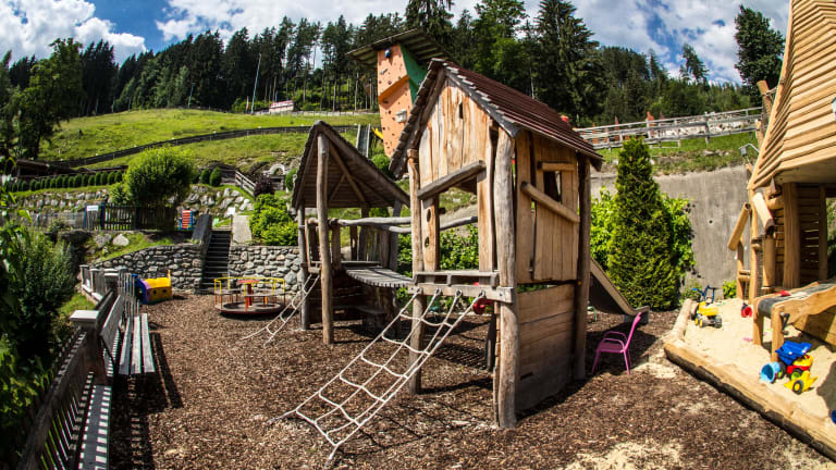 Ihre Kinder vergnügen sich in unserem hoteleigenen Kinder-Abenteuerpark (mit 8m Kletterturm, Trampolin, Seil- & Hangrutsche, Kinderspielplatz, Pfeil & Bogen-Schießen …) und 400 m² Kinderland mit Betreuung (Basteln, Malen, Pyjamapartys, Märchenstunden, Mini-Playback-Show, Pizzabacken, Brotbacken, Kinoabende …). Neben Kinderstuhl, Babybett, Wickelauflage und Badewanne stehen Ihnen auch Babyphone und Buggies (keine Buggies mit Liegeschale), sowie Baby- & Kleinkindbetreuung zur Verfügung. Für die "Größeren Kids" gibt es ein Teenie Programm (Hauptsaisonszeiten).