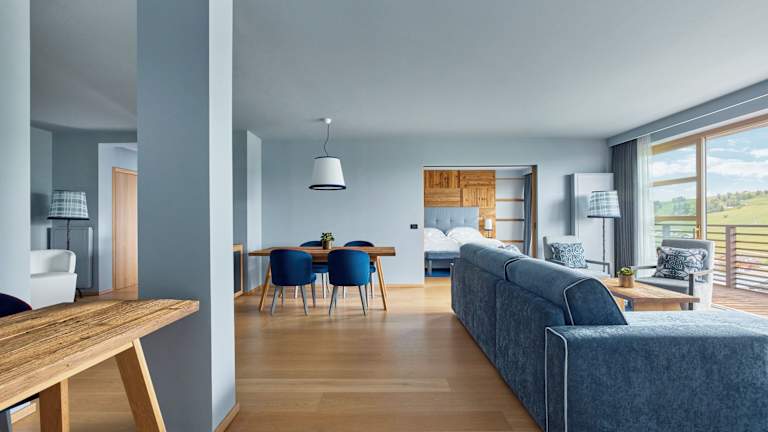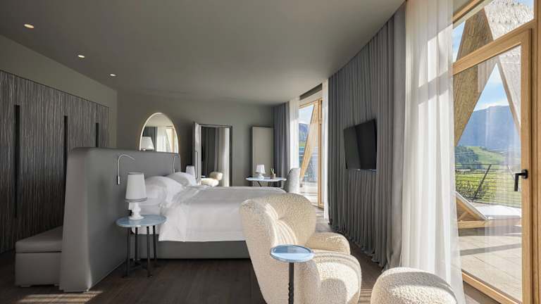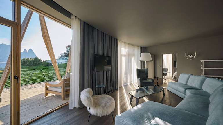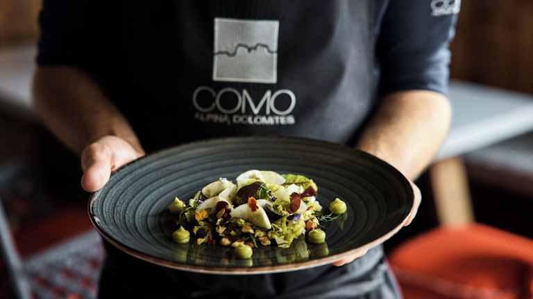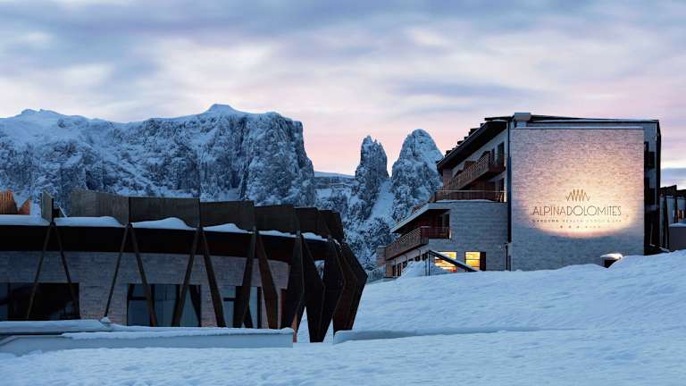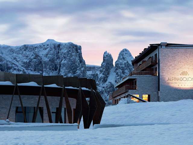 Das ultra-moderne Hotel COMO Alpina Dolomites zeichnet sich durch eine besondere Architektur mit Glasfassade aus. Ein umfangreiches Wellnesscenter mit Innen- und Außenpools sowie eine große Terrasse mit Blick auf die Dolomiten und die Pisten ergänzen das Angebot. Der beheizte Skiraum ist kostenfrei nutzbar.