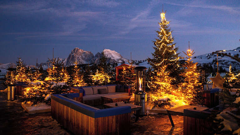 Das Hotel befindet sich auf der Seiser Alm, direkt an der Skipiste. Eine gute Anbindung nach Bozen ist über die Autobahn A22 gegeben, die etwa 30 km entfernt liegt.