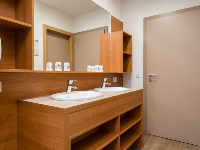 Die ansprechenden Zimmer - alle mit DU/WC - sind großteils mit 4-6 Betten ausgestattet. Für Lehrer und Begleitpersonen stehen 2-Bett-Zimmer zur Verfügung.
