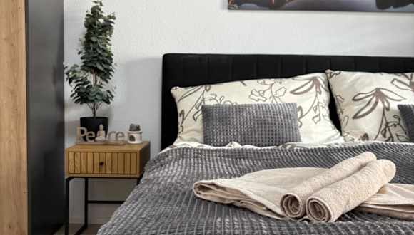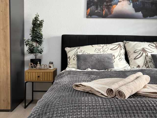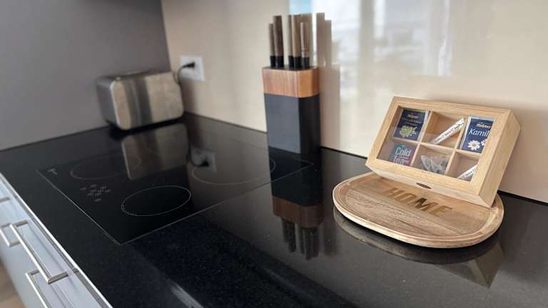 Die Ferienwohnung verfügt über ein Schlafzimmer, eine voll ausgestattete Küche mit Kühlschrank und Geschirrspüler, einen Flachbild-TV, einen Sitzbereich und ein Badezimmer mit Dusche. Handtücher und Bettwäsche werden bereitgestellt.