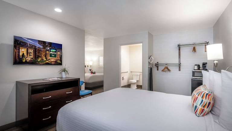 Buchen Sie das Alpine Inn in Anaheim für einen komfortablen Aufenthalt in der Nähe von Disneyland. Das Hotel bietet einen beheizten Außenpool und kostenfreies WLAN. Die Zimmer sind mit praktischen Annehmlichkeiten wie einer Mikrowelle und einem Kühlschrank ausgestattet. Ein Businesscenter und ein Waschsalon stehen den Gästen zur Verfügung. Die Lage des Hotels in der Nähe des Kongresszentrums Anaheim Convention Center macht es zum idealen Ausgangspunkt für Geschäftsreisende.