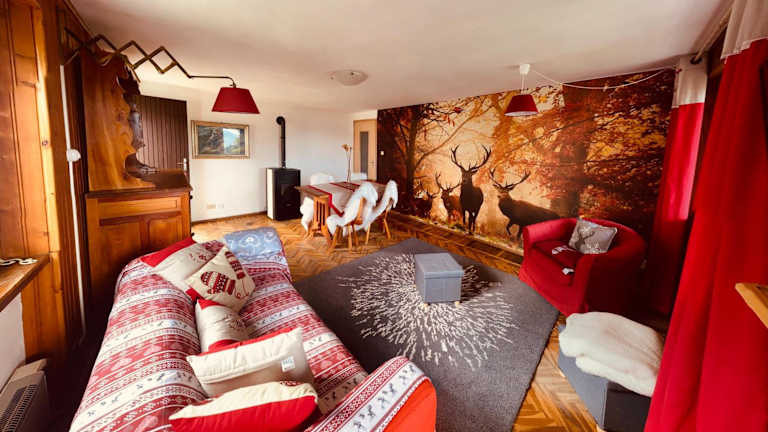 Alpine Majestic Escape - Balcone sulle Piste di Sci CIR 0102 bietet Übernachtungsmöglichkeiten mit Garten, Terrasse und Restaurant. Die Unterkunft ist für ihre Einrichtung von 2 Schlafzimmern und einer Küche bekannt.