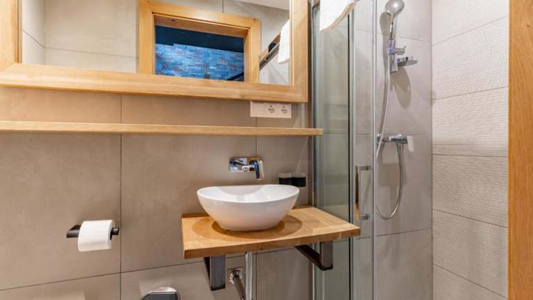 Das Chalet verfügt über vier Schlafzimmer, ein Wohnzimmer und eine voll ausgestattete Küche mit Kühlschrank und Kaffeemaschine. Es sind vier Badezimmer mit Dusche vorhanden. Handtücher und Bettwäsche werden zur Verfügung gestellt. Eine Terrasse ist ebenfalls vorhanden.